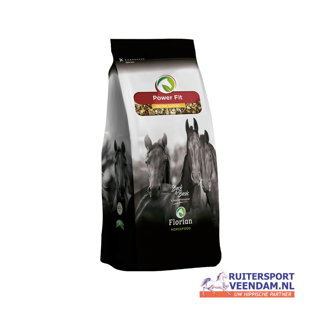 De Power Fit is een uitgebalanceerde Support Mix, met veel eiwit van hoogwaardige kwaliteit. De Power Fit is hoog in eiwit met daarbij extra Vitamine E en biotine toegevoegd. De mix bevat daarnaast ook energie uit koolhydraten, wat zorgt voor extra kracht en bruikbare energie. Deze supportmix is zeer geschikt voor jonge paarden, paarden in de sport die extra spieren moeten opbouwen of oudere paarden met een hogere eiwitbehoefte.