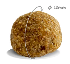 Ruw eiwit 17,5%, ruw vet 10%, ruwe celstof 3%, ruwe as 5,2%, vocht 10%, calcium 0,9%, fosfor 0,8%