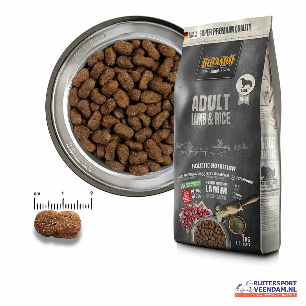 Samenstelling Rijst (40 %); vers lamsvlees, -lever en -long (30 %); gevogelte eiwit, asarm*¹ (12,5 %); lamseiwit*¹ (10 %); voerhavermeel; druivenpitexpeller; brouwgist, geïnactiveerd*¹; havermoutafvalmeel; chiazaad (1,5 %); pluimveevet; lijnzaad; pluimveelever*²; natriumchloride; kaliumchloride; kruiden*¹ (brandnetelblad, gentiaanwortel, duizendguldenkruid, kamille, venkel, karwij, maretak, duizendblad, braambladeren) (0,2 %); yucca schidigera *¹gedroogd *²gehydrolyseerd