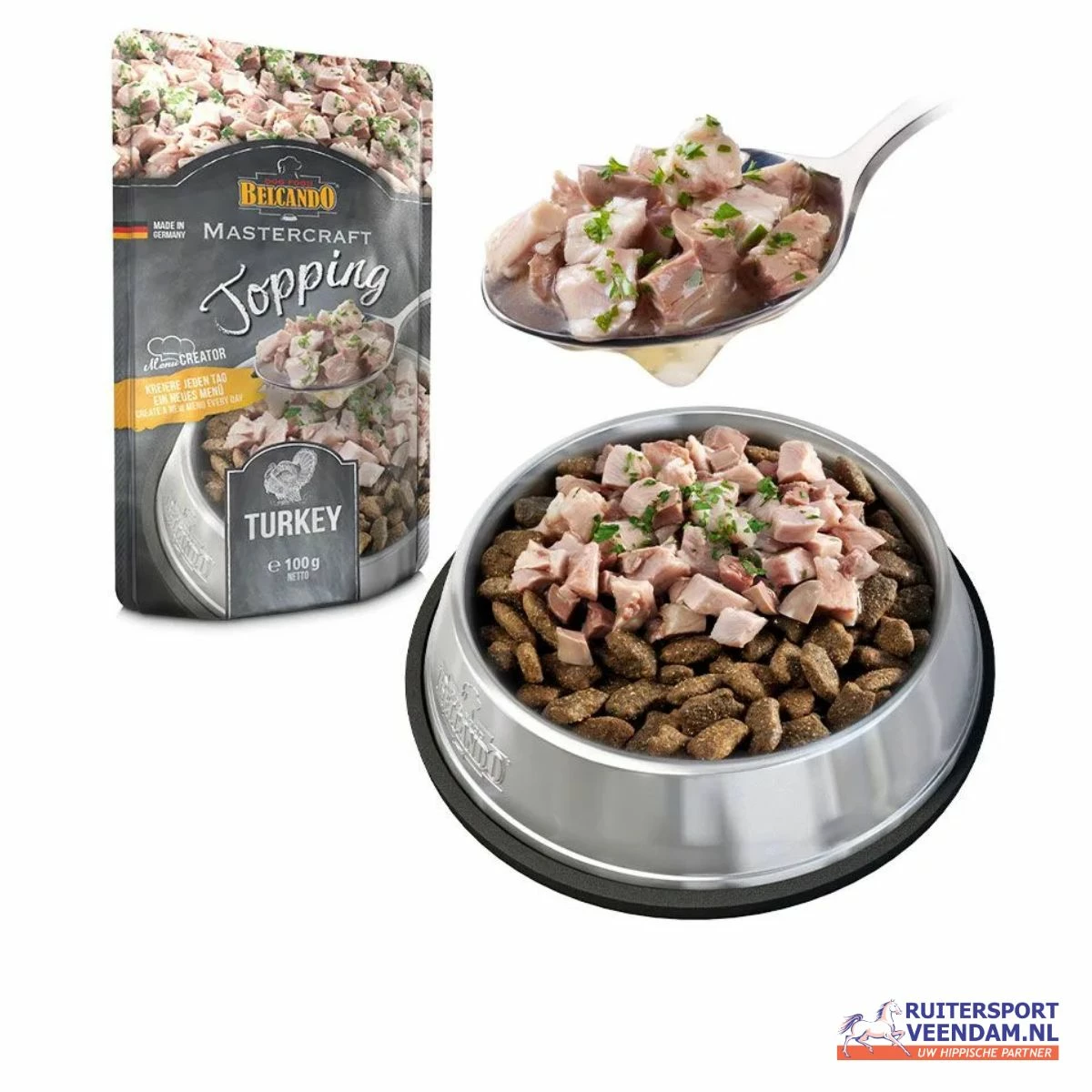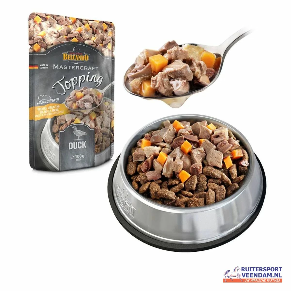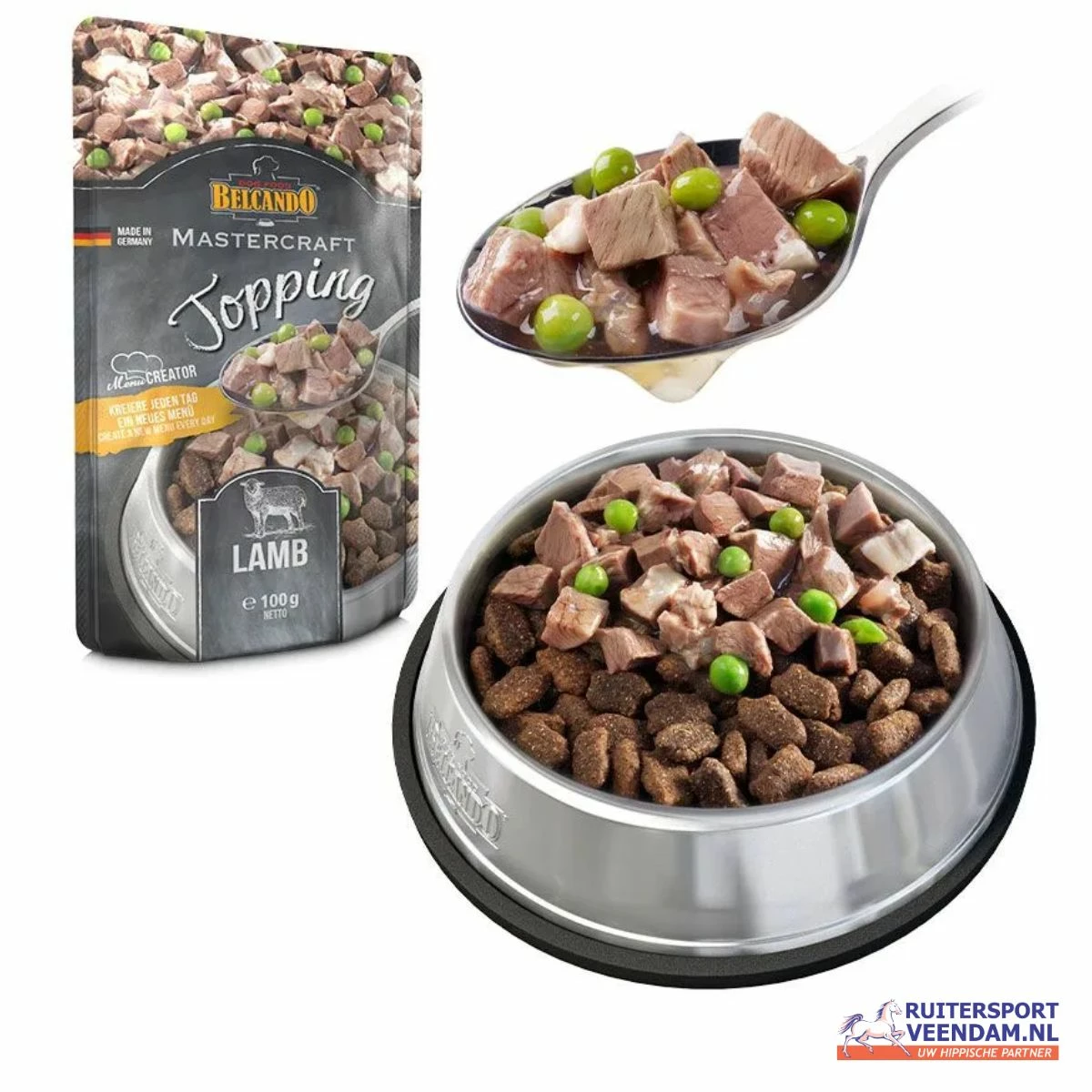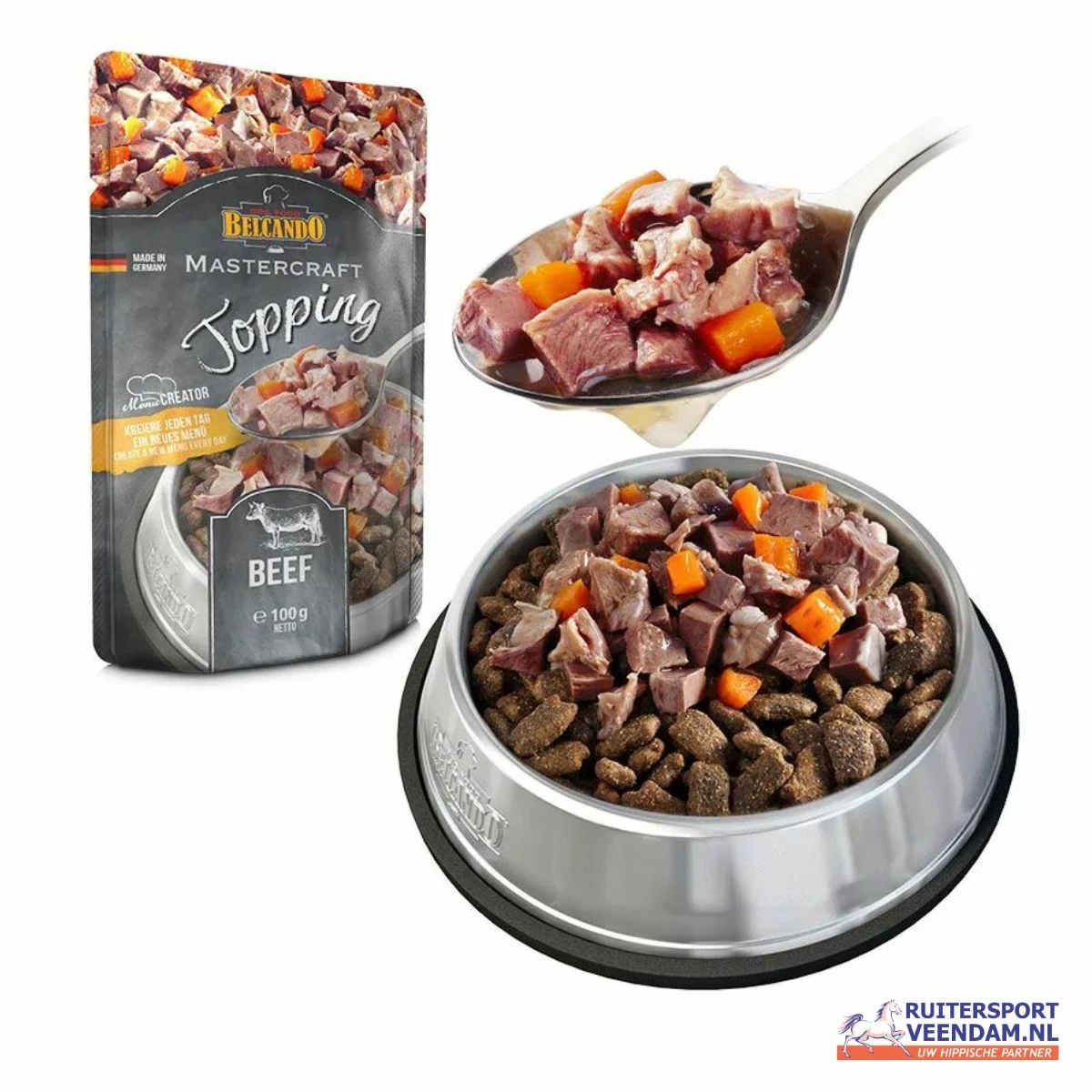 Uw hond is een echte fijnproever en houdt van de smaak van knapperige brokjes en zachte vleesblokjes in een lekkere bouillon? Dan zijn onze toppings precies de juiste oplossing. Ook hier geldt: Alles is op elkaar afgestemd en iedere portie is de “finishing touch” van uw menu. Met de nieuwe toppings van BELCANDO MASTERCRAFT verfijnt u elk droogvoermenu. De verse stukjes vlees worden in hun eigen vocht voorzichtig gegaard en met wat groente verfijnd. Dat betekent dat ze een lagere energiedichtheid hebben dan klassiek natvoer. Toppings zijn “aanvullingen op droogvoer” – hiermee maak je van elk droogvoer een verse, natuurlijke smaakexplosie voor uw hond. Lekker, vers en sappig. Wij garanderen, dat terwijl u het klaarmaakt, uw hond laat zien hoe erg hij zich verheugd op zijn verse menu!
