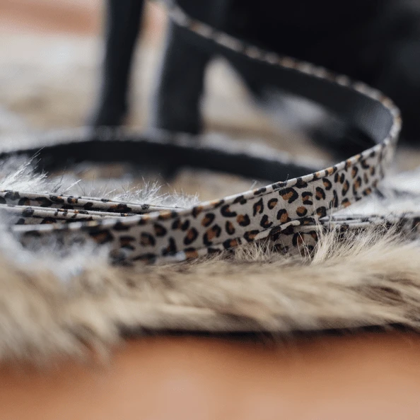 Deze superhandige en modieuze honden looplijn is de perfecte match voor de Luipaard Hondenhalsband. De lijn is vervaardigd uit een zeer zachte microvezel aan de buitenkant en versterkt met nylon voor extra stevigheid. Hij heeft een handige lus en clip voor je gebruiksgemak. De lijn kan in de wasmachine gewassen worden op 30° met een waszak. Hij kan niet in de droger.