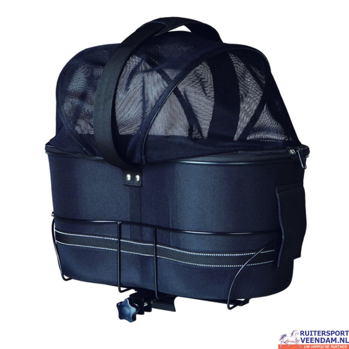 Deze stevige fietsmand is ideaal voor brede bagagedragers, tot 16 cm en biedt een veilige plek voor je hond tijdens het fietsen.