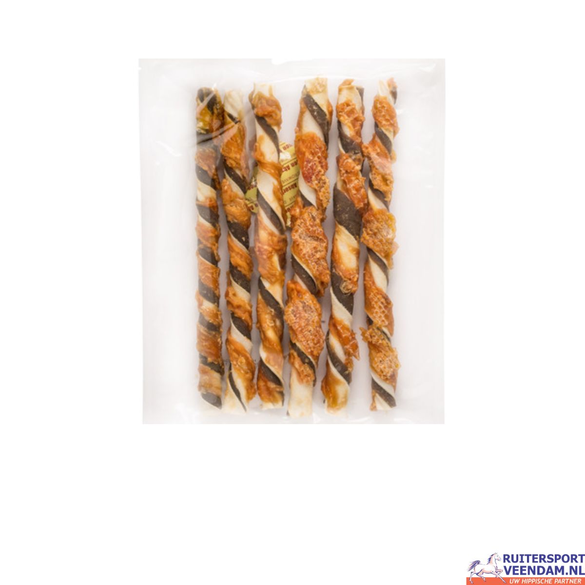 Deze Kip & Rundstaven Groot zijn smakelijke, stevige kauwsnacks voor honden die graag wat langer willen kauwen. De combinatie van kip en rund zorgt voor een heerlijke smaak, terwijl de stevige structuur bijdraagt aan een gezond kauwgedrag. Met een kauwhardheid van 4 zijn deze staven ideaal voor middelmatige tot stevige kauwers.