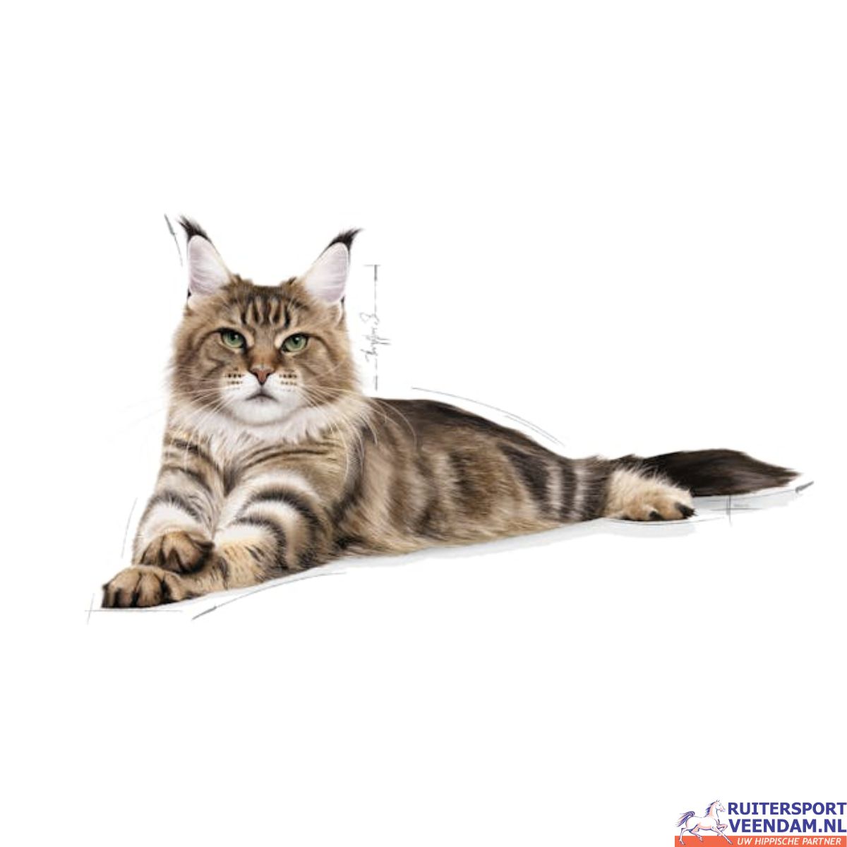 ROYAL CANIN® Maine Coon Adult is speciaal samengesteld om te voldoen aan de voedingsbehoeften van dit specifieke ras. Het beantwoorden aan de voedingsbehoeften van je Maine Coon is voor ons net zo belangrijk als voor jou. De Maine coon is de grootste huiskat ter wereld, maar achter zijn indrukwekkende gestalte schuilt een lief karakter. Deze kat heeft een stevige botstructuur en gespierd lichaam, waardoor ze tot drie keer zwaarder kan zijn dan de gemiddelde kat. Door haar grote formaat en kenmerkende botstructuur moet je aandacht besteden aan de algemene gezondheid en conditie van de gewrichten. De voeding ROYAL CANIN® Maine Coon Adult is verrijkt met taurine en EPA & DHA (omega 3-vetzuren) om de gezonde hartfunctie van je kat te helpen ondersteunen en te behouden. De Maine coon heeft een grote kaak, en als gevolg daarvan een kenmerkende manier om haar voeding vast te pakken en te kauwen. Daarom is de brok van ROYAL CANIN® Maine Coon Adult speciaal gemaakt met een grote kubusvorm. Het unieke brokje stimuleert het kauwen, wat de gebitshygiëne helpt te ondersteunen.