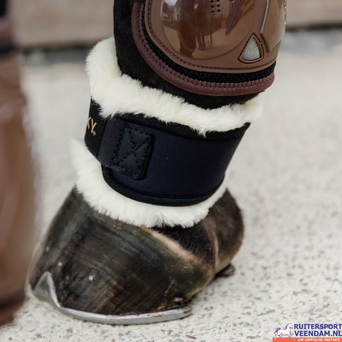 De Kentucky Sheepskin Pastern Wrap biedt lichte, ademende bescherming voor het gevoelige kootgebied van het paard. De wrap is gemaakt van flexibel neopreen en afgewerkt met 100% diervriendelijke kunstbontvoering, die zacht aanvoelt en uitstekende schokdemping biedt. Dankzij de verstelbare klittenbandsluiting blijft de wrap stevig op zijn plaats zonder te verschuiven. Ideaal om overreach‑blessures en stoten te voorkomen tijdens training of springen. Machinewasbaar op 30°C.