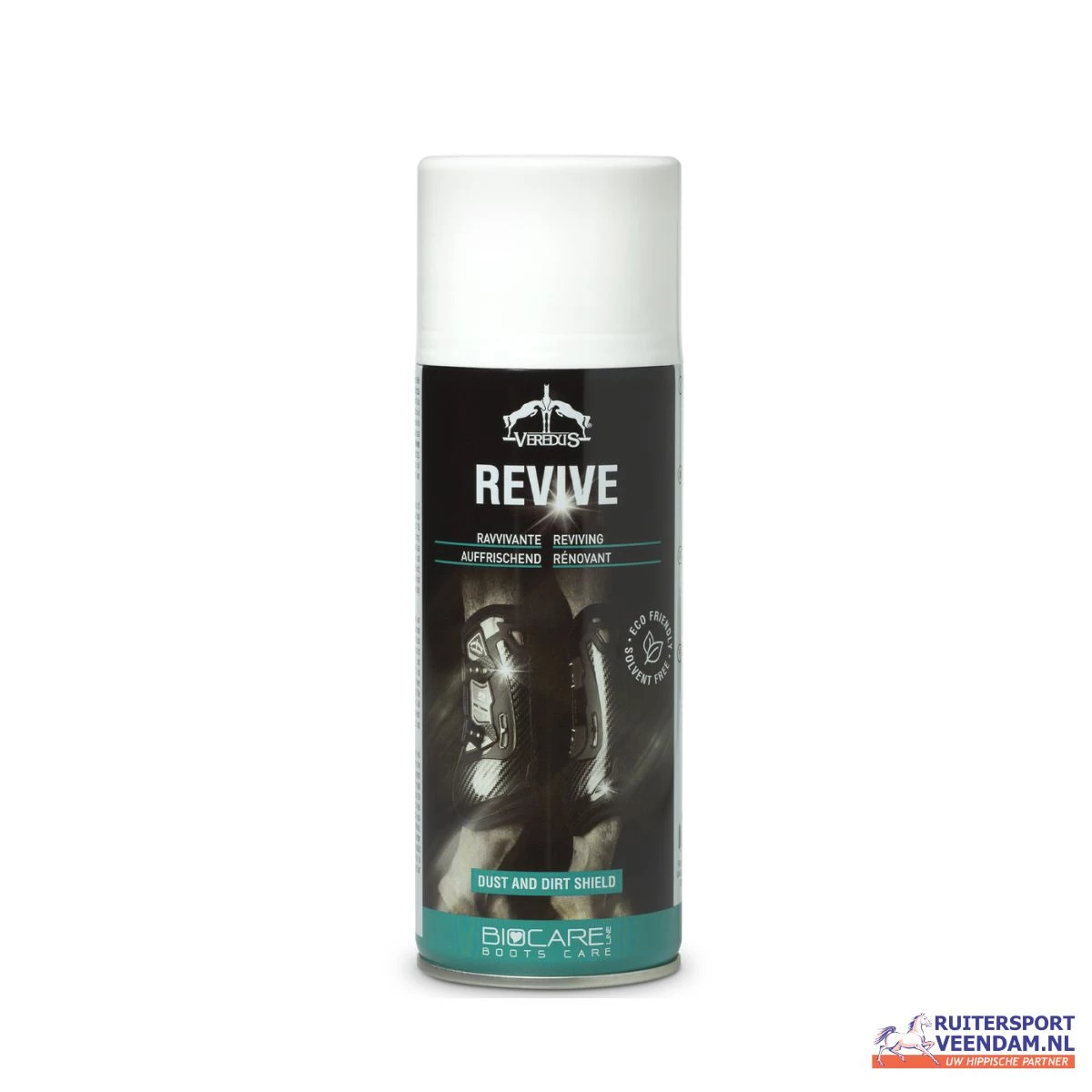 Revive Spray is het ideale product voor het onderhoud van paardenbeschermers en andere accessoires. Het geeft nieuwe glans aan paardenbeschermers en werkt als een poetsmiddel en schild tegen stof en vuil. De waterafstotende en beschermende formule is perfect voor paardenbeschermers en de vernieuwende en polijstende werking maakt de beschermers als nieuw. Revive houdt paardenbeschermers efficiënt, beschermd en glanzend door de tijd heen. Revive is milieuvriendelijk omdat het geen oplosmiddelen of andere giftige stoffen bevat.