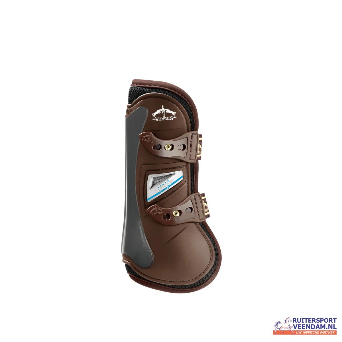 De warmte die vrijkomt van het been van het paard passeert door de micro-geperforeerde neopreenlaag en wordt verdeeld in de 3D mesh luchtgeleidende stof. Frisse lucht komt binnen via de luchtinlaten en leidt de warmte naar boven naar het uitlaatrooster. De ventilatie is daarom zowel horizontaal als verticaal. De bescherming van de voorste pezen wordt gegarandeerd door een schokabsorberende film in EVA.