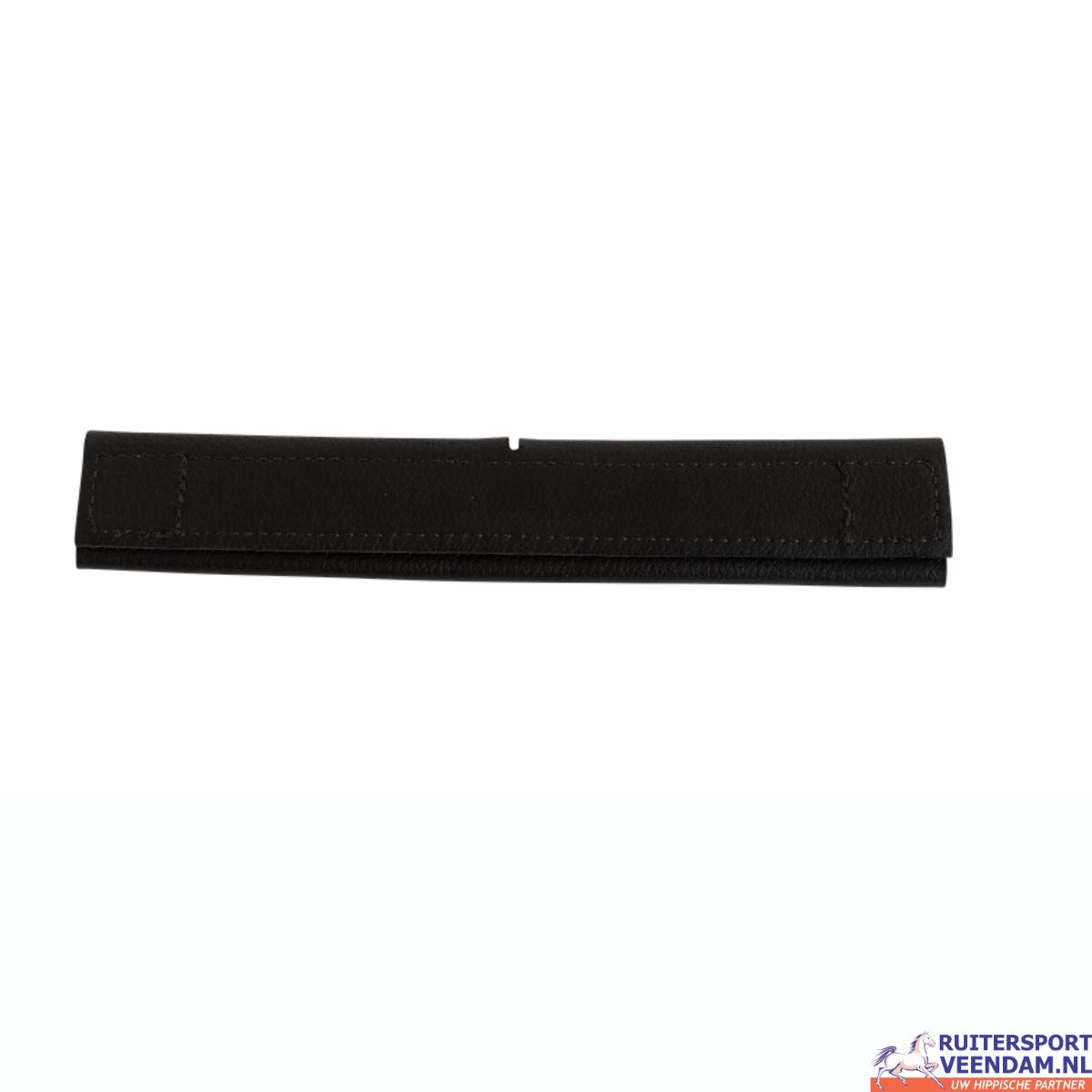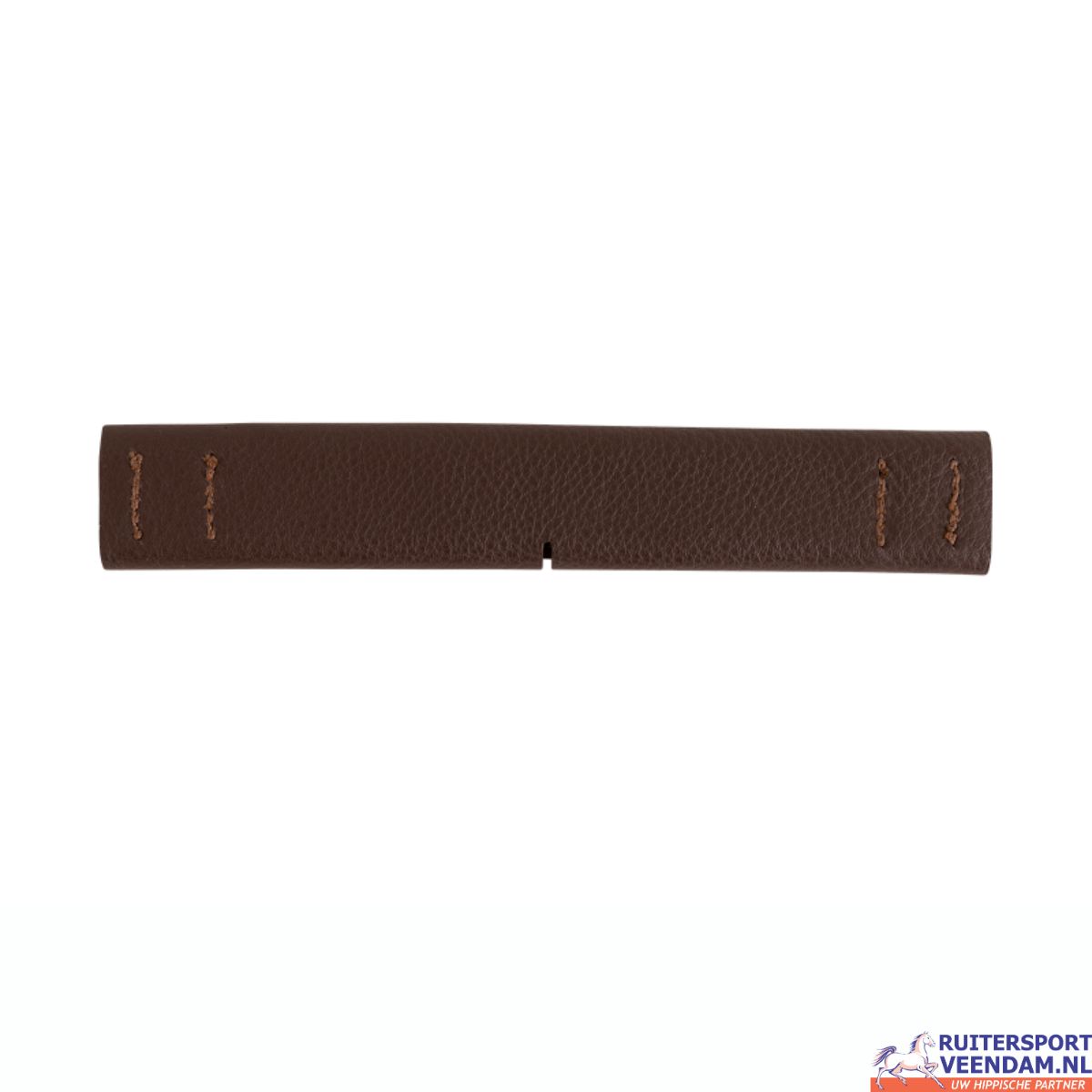 De beschermer zorgt ervoor dat de druk van de kinketting niet op één punt terechtkomt, maar mooi wordt verdeeld over een groter oppervlak. Dit maakt het gebruik van een stang of pelham comfortabeler voor paarden met een gevoelige kin. Het dunne leer voorkomt bulk, zodat de inwerking van het bit nauwkeurig blijft.