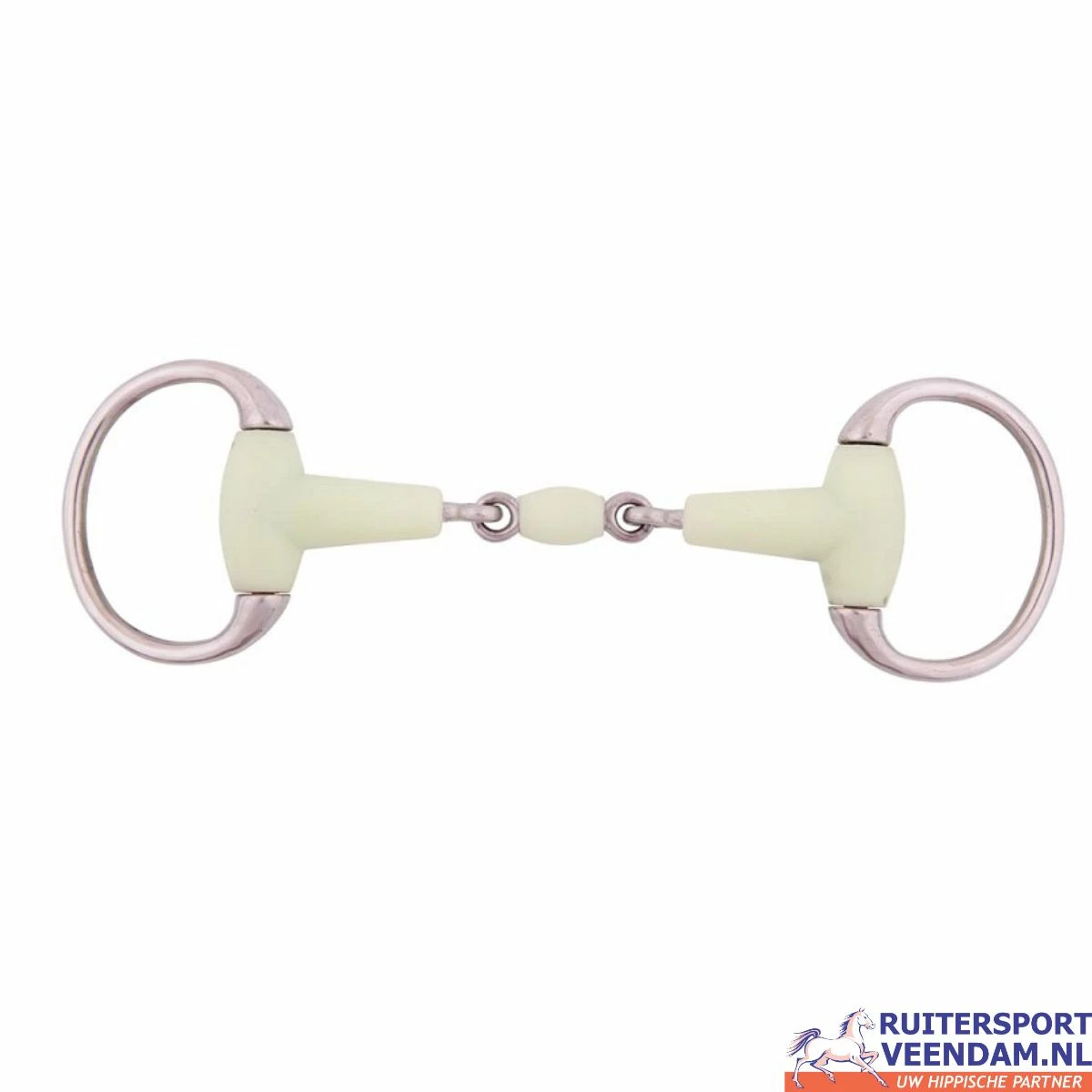Dubbel gebroken bustrens met Apple Mouth mondstuk en roetsvrijstalen ringen, ringen 65 mm. Het mondstuk heeft een dikte van 18 mm.
