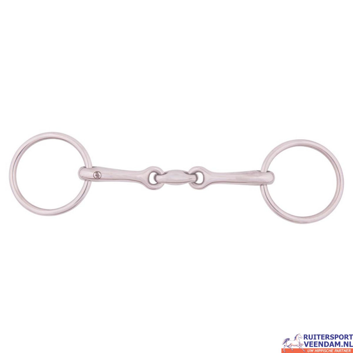 De BR dubbel gebroken onderlegtrens is een klassieke watertrens van massief roestvrij staal, ontworpen voor een zachte maar duidelijke inwerking. Het dubbelgebroken mondstuk van 13 mm verdeelt de druk gelijkmatig en voorkomt de notenkrakerwerking, waardoor het bit vriendelijker ligt in de paardenmond. De 55 mm ringen zorgen voor stabiliteit en een rustige ligging.
