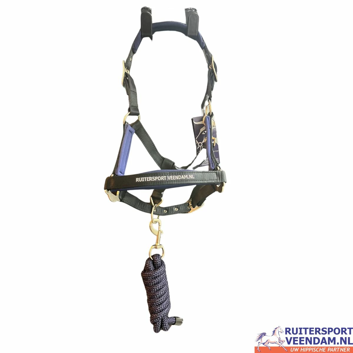 Deze halsterset combineert elegantie en functionaliteit dankzij de bekleding van satijn en de onderlegging met neopreen voor extra comfort. Het halster is verstelbaar aan beide zijden van het kopstuk en aan de kaak, zodat het perfect kan worden aangepast aan de behoeften van jouw paard.