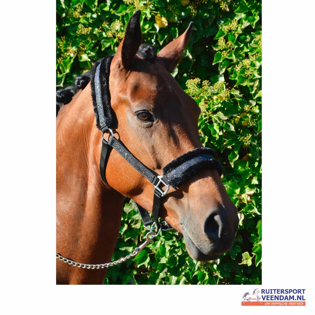 Dit HB Glamour Halster biedt comfort en stijl met teddyvoering op neus en kopstuk. Het is dubbel verstelbaar voor een optimale pasvorm en heeft schitterende glitteraccenten op de neus en hoofdband.