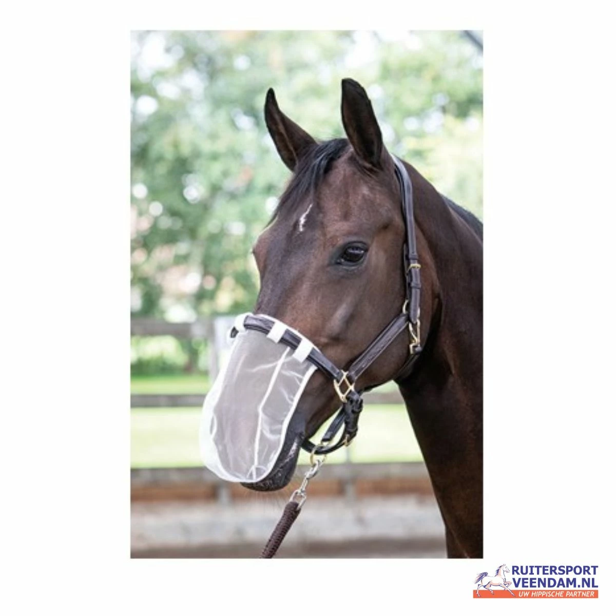 Zeer effectieve neusbescherming. Speciaal anatomisch gevormd om de neus maximaal te beschermen tegen vliegen, pollen en andere zaken die de neus binnen kunnen dringen en het paard irriteren. De ademhaling van het paard en het bitgebruik worden niet belemmerd door gebruik van de Nose Net.