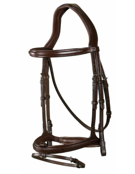 De Dy’on flash noseband hoofdstel uit de New English Collection is een zeer mooi Engels lederen hoofdstel met anatomisch kopstuk dat is uitgesneden om druk op de oren van het paard te voorkomen.
