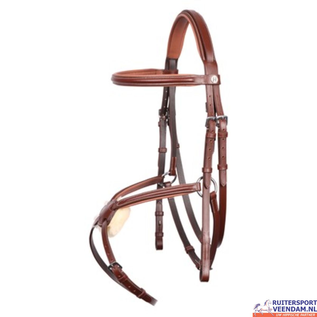 Dit bruine Mexicaanse hoofdstel is een comfortabele en stijlvolle keuze voor ruiters die een goede pasvorm en zachte afwerking belangrijk vinden. Het hoofdstel is voorzien van zachte padding op de frontriem, neusriem en het kopstuk, wat zorgt voor extra comfort voor het paard. De contrasterende stiksels geven het geheel een luxe uitstraling. Onder het midden van de neusriem bevindt zich een zachte wollen bescherming om schuren te voorkomen. Het hoofdstel wordt compleet geleverd met webband teugels, zodat je direct klaar bent om te rijden.
