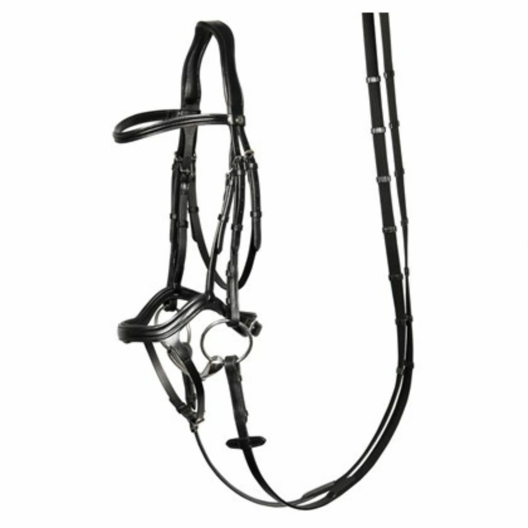 Wordt geleverd met hangende frontriem. Dit vermindert de druk bij de oren van het paard.