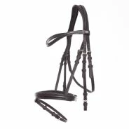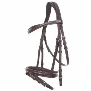 Ons klassiek Engels gecombineerd hoofdstel Quentin is gemaakt van zeer goede kwaliteit leer. Dit leer staat voor een zeer goede duurzaamheid en robuustheid in het dagelijkse werk. De hoofdband is eenvoudig en recht gesneden. Het kopstuk en de neusriem zijn zacht onderlegd en sluiten perfect aan op het paardenhoofd. De neusriem is overloop, waardoor er minder gespen nodig zijn. Bijbehorende webband teugels met stops worden meegeleverd. Gebruik van het Quentin hoofdstel: