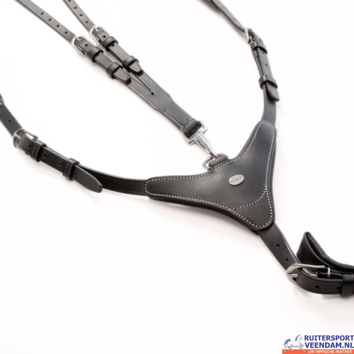 Het stevige, verstelbare borstriem‑design garandeert een nauwkeurige pasvorm. De afneembare martingaalvorkjes maakt het voortuig veelzijdig inzetbaar, afhankelijk van de trainings- of wedstrijdsituatie. Stijlvolle contrast- en ziernaden geven het geheel een elegante uitstraling.