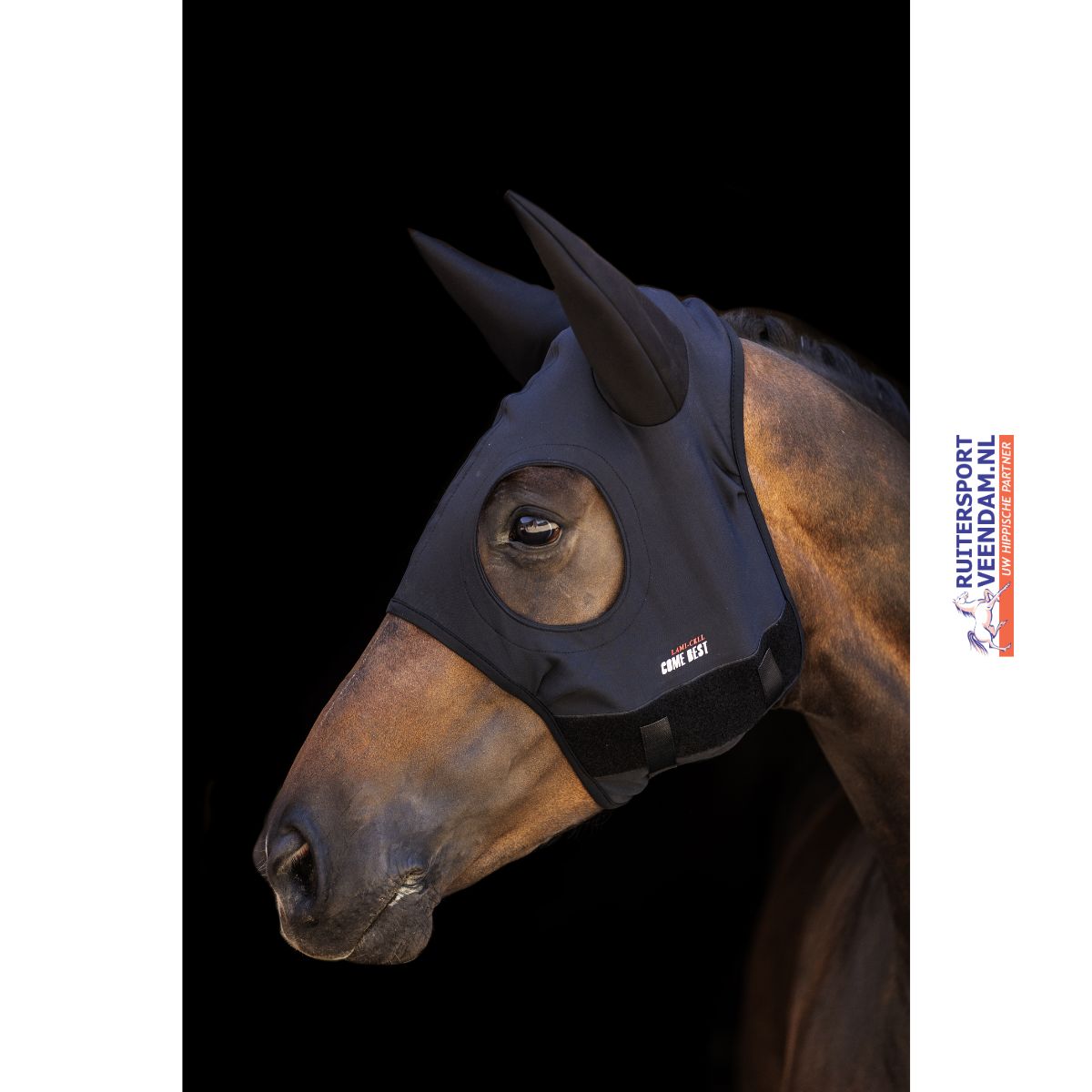 Het masker is veelzijdig inzetbaar: in de stal, op de paddock of onderweg. Bij behoefte kan het zelfs 24/7 gedragen worden
