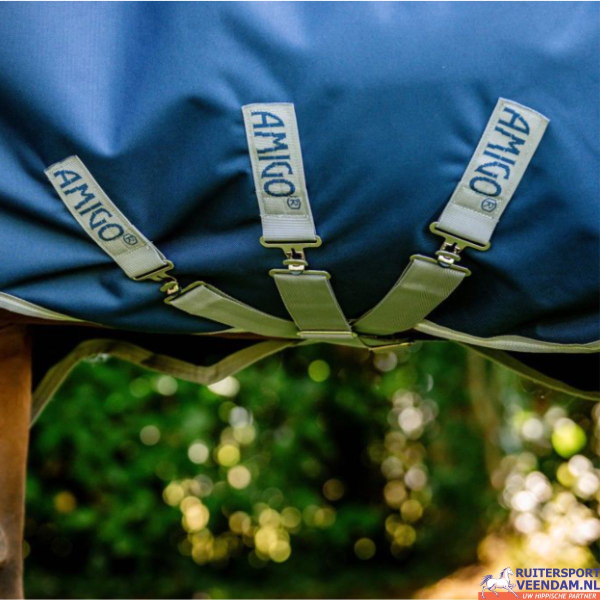 De Amigo® 1200D (Bravo) FieldSafe Plus Turnout is een stevige, waterdichte winterdeken met 250g vulling.