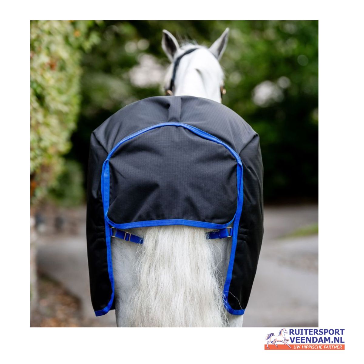 Extra functies zijn onder andere twee gekruiste singels voor stabiliteit, een waterdichte staartflap voor extra bedekking en een staartriem voor extra veiligheid. Deze deken is compatibel met een voering, waardoor je de mogelijkheid hebt om extra warmte toe te voegen wanneer nodig. Capuchonlussen maken compatibiliteit met de Amigo® cape-serie mogelijk, wat zorgt voor meer flexibiliteit bij veranderende weersomstandigheden.