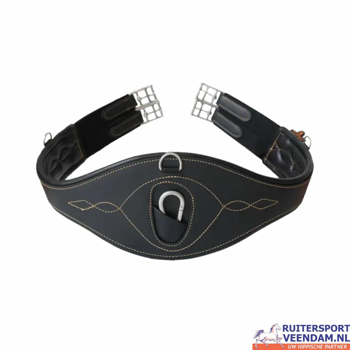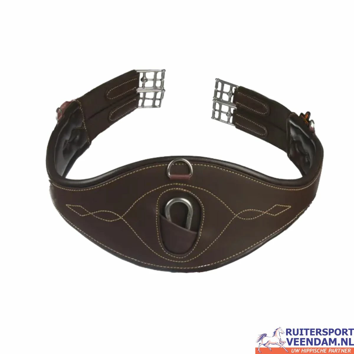 De Anatomic Girth singel is speciaal gevormd en ontworpen om de natuurlijke beweging van het paard te volgen waardoor deze comfort en vrijheid biedt. De schouders en de ellebogen van het paard worden ontlast waardoor het paard beter kan ademen terwijl het risico op blessures nog steeds wordt gelimiteerd. De singel is aan beide zijden uitgerust met driedubbele elastiek om zo de druk gelijkmatig te verdelen, alsook heeft deze drie D-ringen om hulpteugels aan vast te maken. Er werd eveneens een karabijnhaak voorzien om de borstriem aan vast te maken. De singel bevat EVA-schuim aan de binnenzijde en is gemaakt van artificieel leder waardoor deze zeer gemakkelijk te onderhouden is. Het artificieel leder neemt geen zweet op waardoor deze niet uitdroogt en barsten vertoont of verkleurt. De singel kan worden schoon gemaakt met onze Kentucky Horsewear Tack Cleaner. Deze werd speciaal ontwikkeld om artificieel leder proper te maken. Uiterst gemakkelijk en efficiënt!