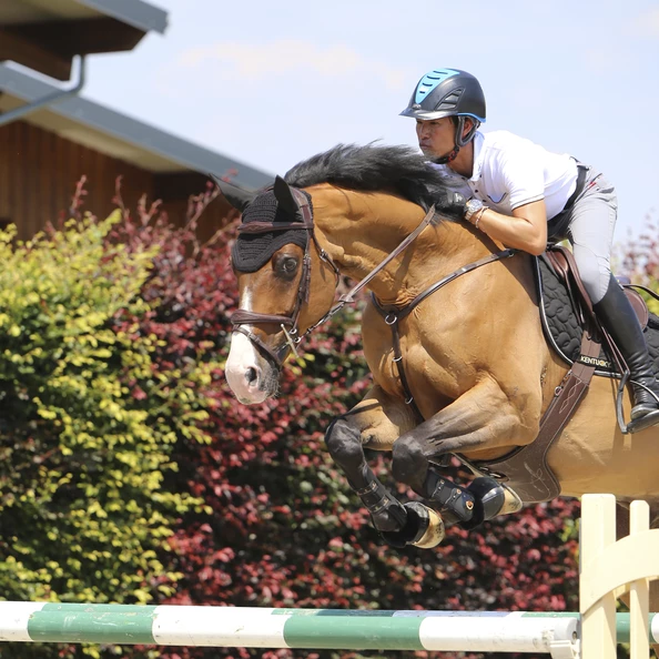 De buikflap singel is anatomisch gevormd en biedt comfort en bescherming tijdens het springen. De wijde buiklap beschermt de buik van het paard tegen de hoefijzers of kalkoenen tijdens het springen. De singel is gevuld met schokabsorberend EVA-schuim en is aan beide zijden uitgerust met driedubbele elastiek, alsook heeft deze drie D-ringen om hulpteugels aan vast te maken.