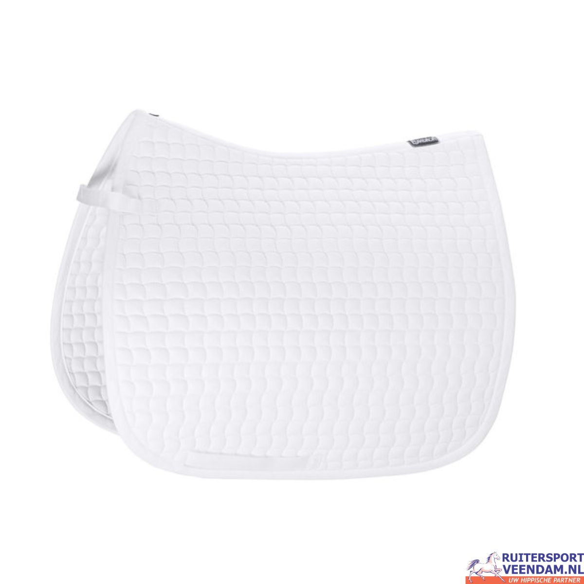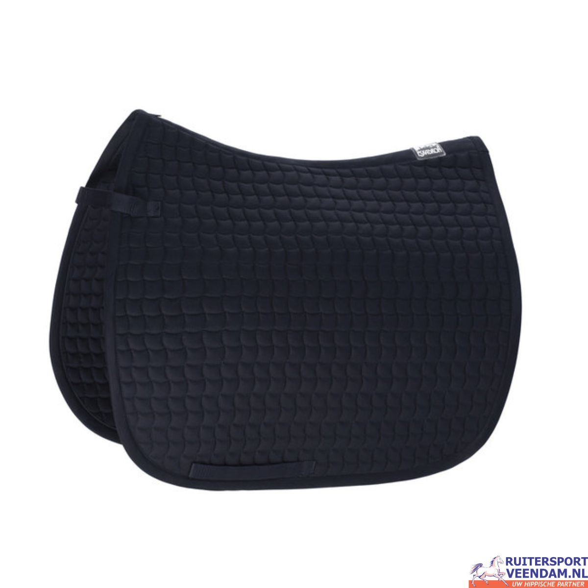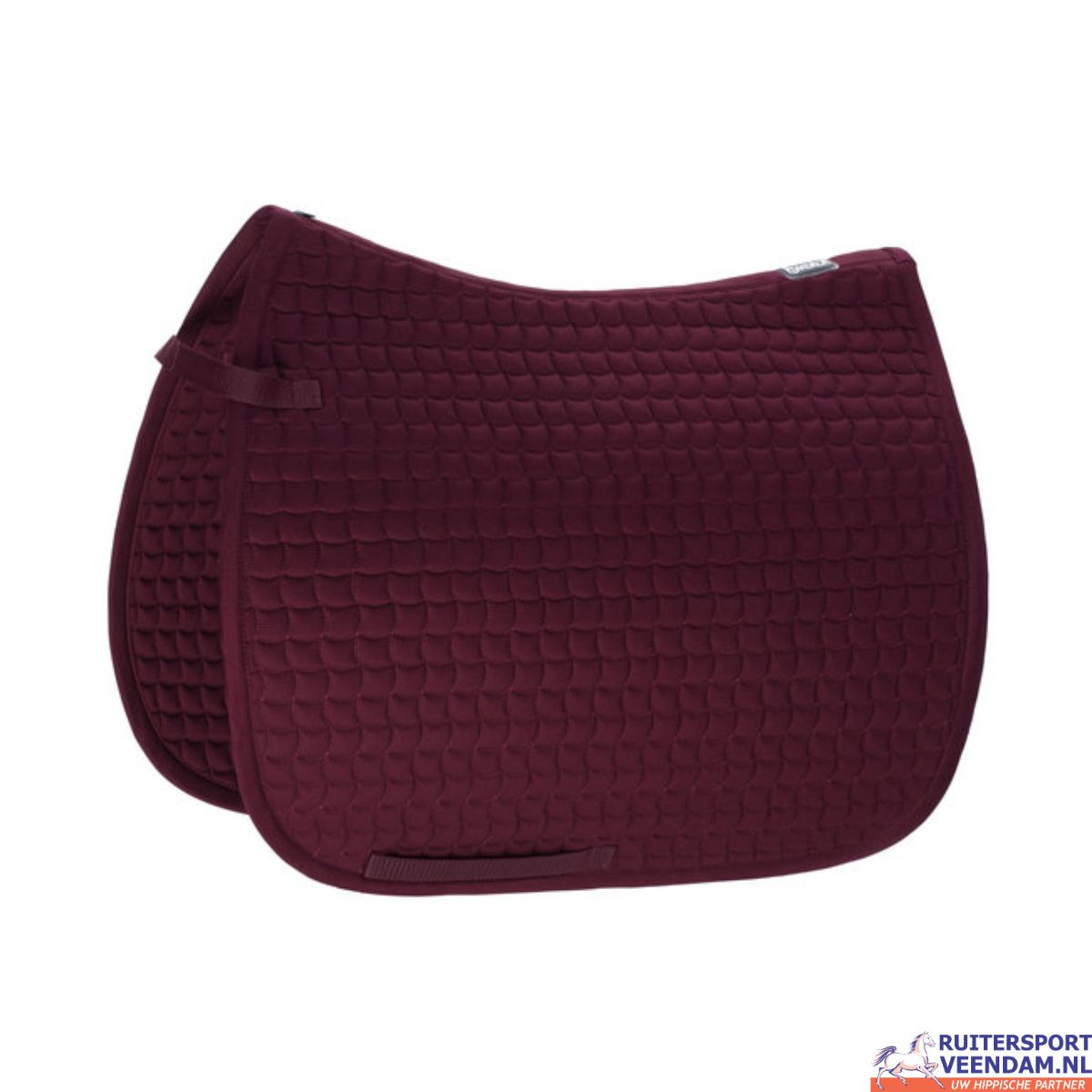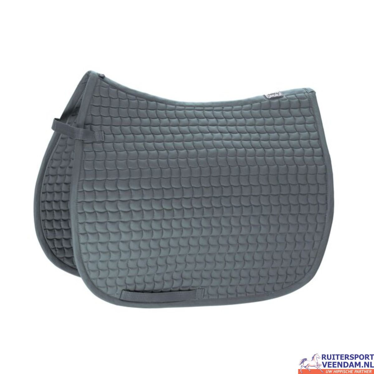 Dit katoenen zadeldek is een dun zadeldek wat anatomisch gevormd is naar de rug van het paard.