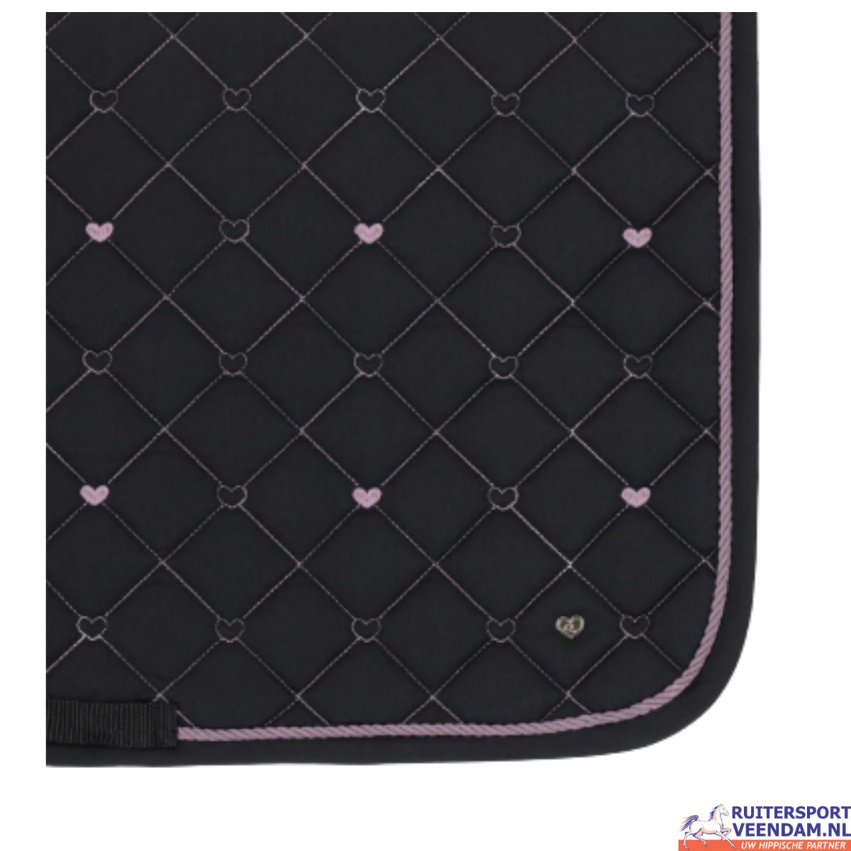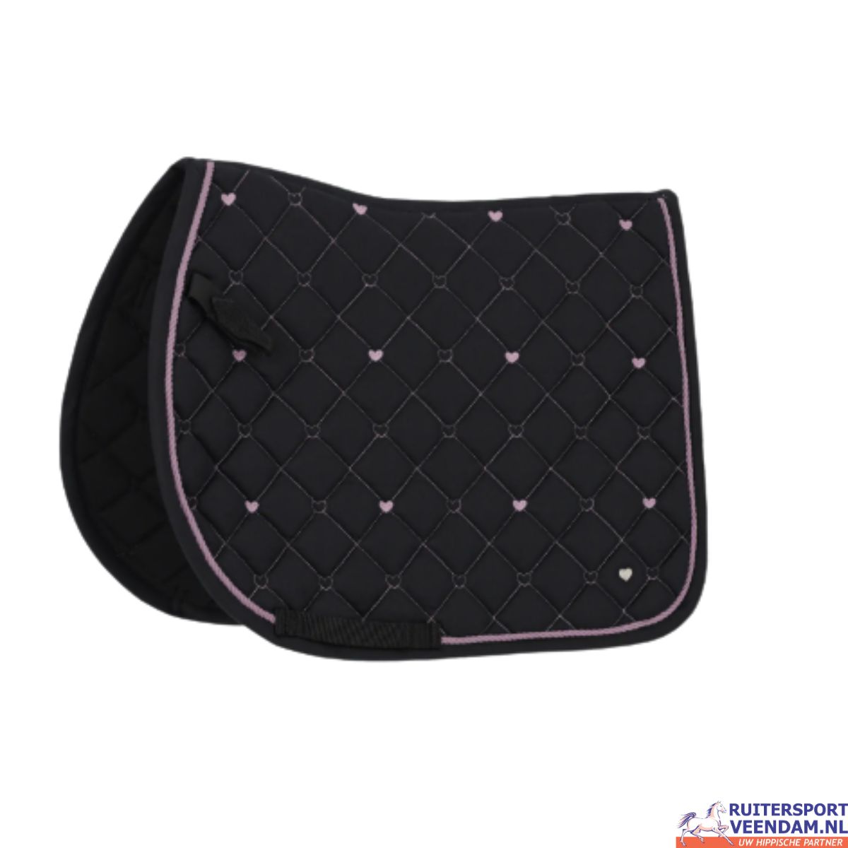 Zadeldek Lize combineert schattige stijl met praktische eigenschappen. Versierd met een gestikte hartjesprint en een elegant sierkoord, is dit zadeldek een echte blikvanger. De Q-pin in de vorm van een hartje op de linkerzijde voegt een speels detail toe dat perfect past bij de rest van de Lize-collectie.