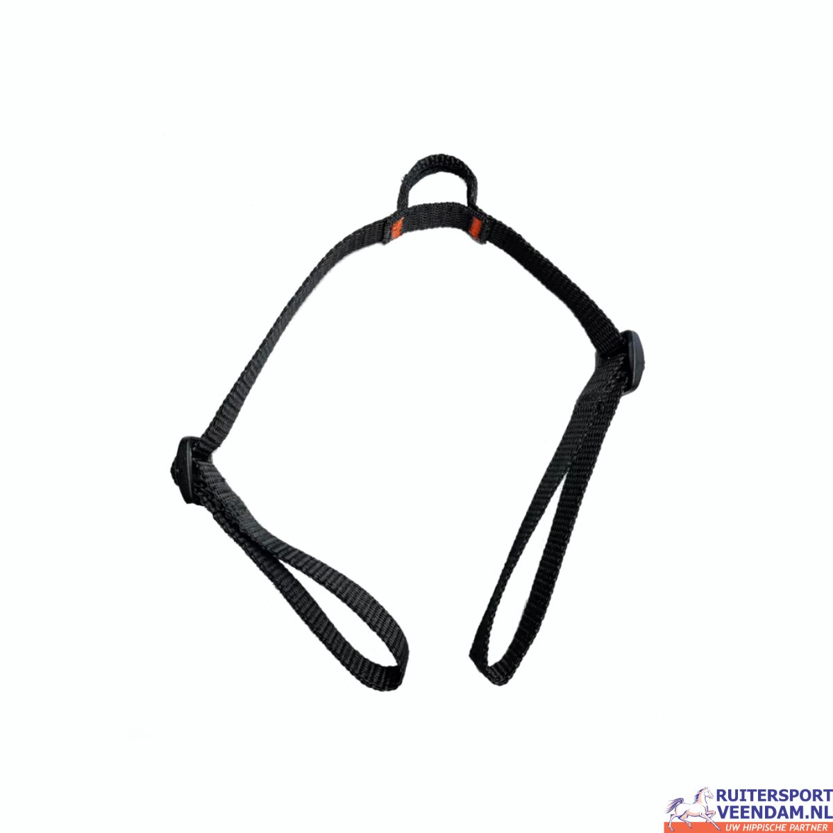 - Wordt bevestigd aan de stijgbeugelriemen (nooit aan zadelringen)