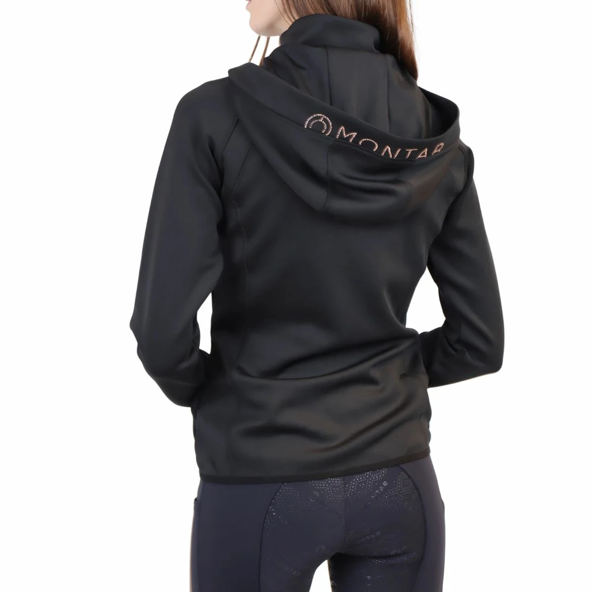 Deze Montar Hoody Liza is een jas met prachtige roségouden kristallen details op de hoodie en straalt een vleugje weelde uit. Met tweewegritsen voor een verbeterde rijervaring en zakken met ritssluiting voor extra gemak. Verhoog uw stijl en comfort met dit essentiële stuk dat functionaliteit combineert met een verfijnde esthetiek.