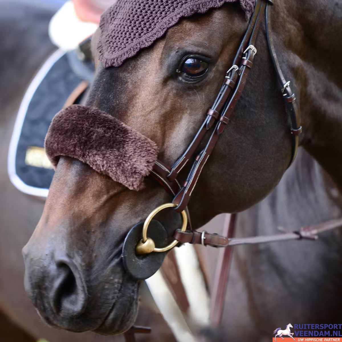Deze veelzijdige cover kan ook achter de oren worden gebruikt om druk van het kopstuk te verminderen. Daarnaast kan hij helpen bij schrikkerige paarden: doordat ze de grond iets minder goed zien, worden ze rustiger bij bijvoorbeeld waterhindernissen. De kunstbontcover beschermt bovendien het leer tegen zweet en vuil.