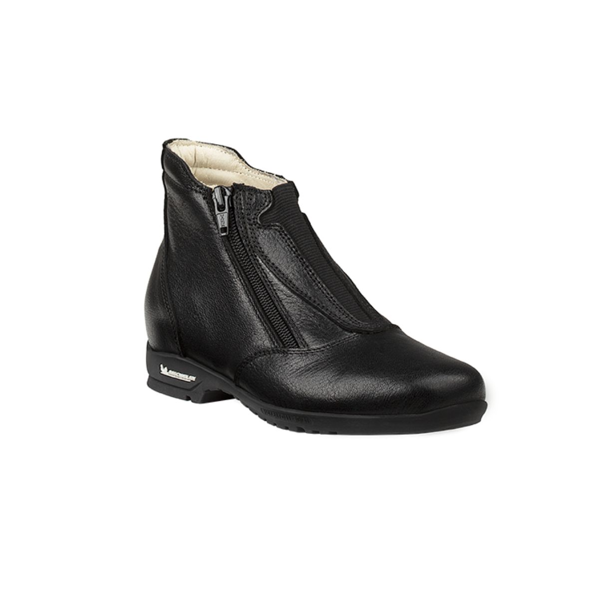 De voetvorm, modern maar elegant, is perfect gevormd om zich aan te passen aan de anatomie van de ruiter. De gelinlegzool zorgt voor maximale stabiliteit in elke situatie.