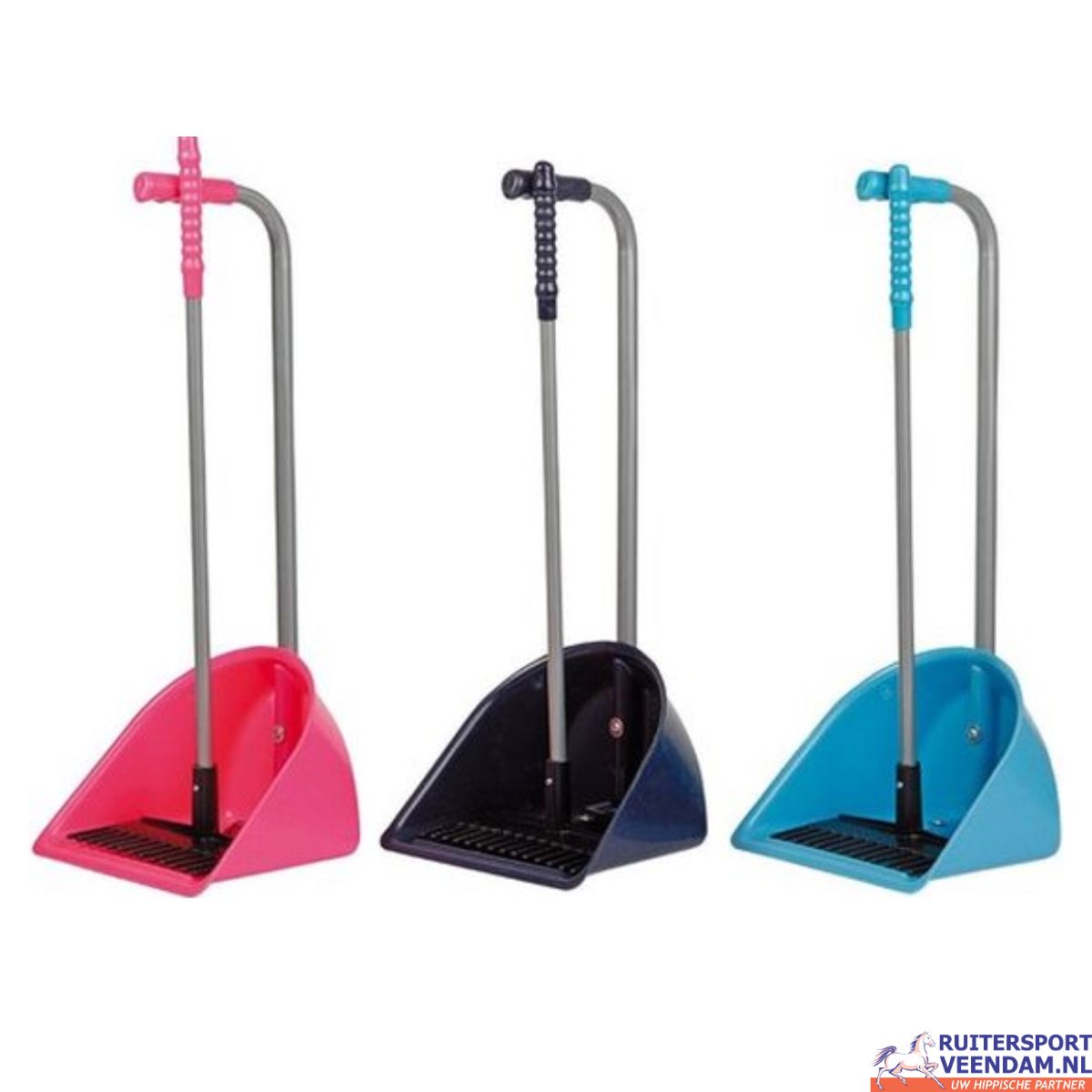Stabiele verzamelbak (kunststof) en handige mestvork (kunststof, metaal).