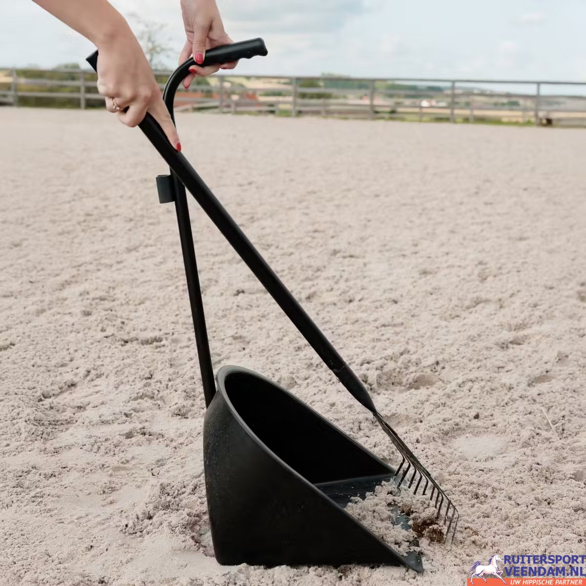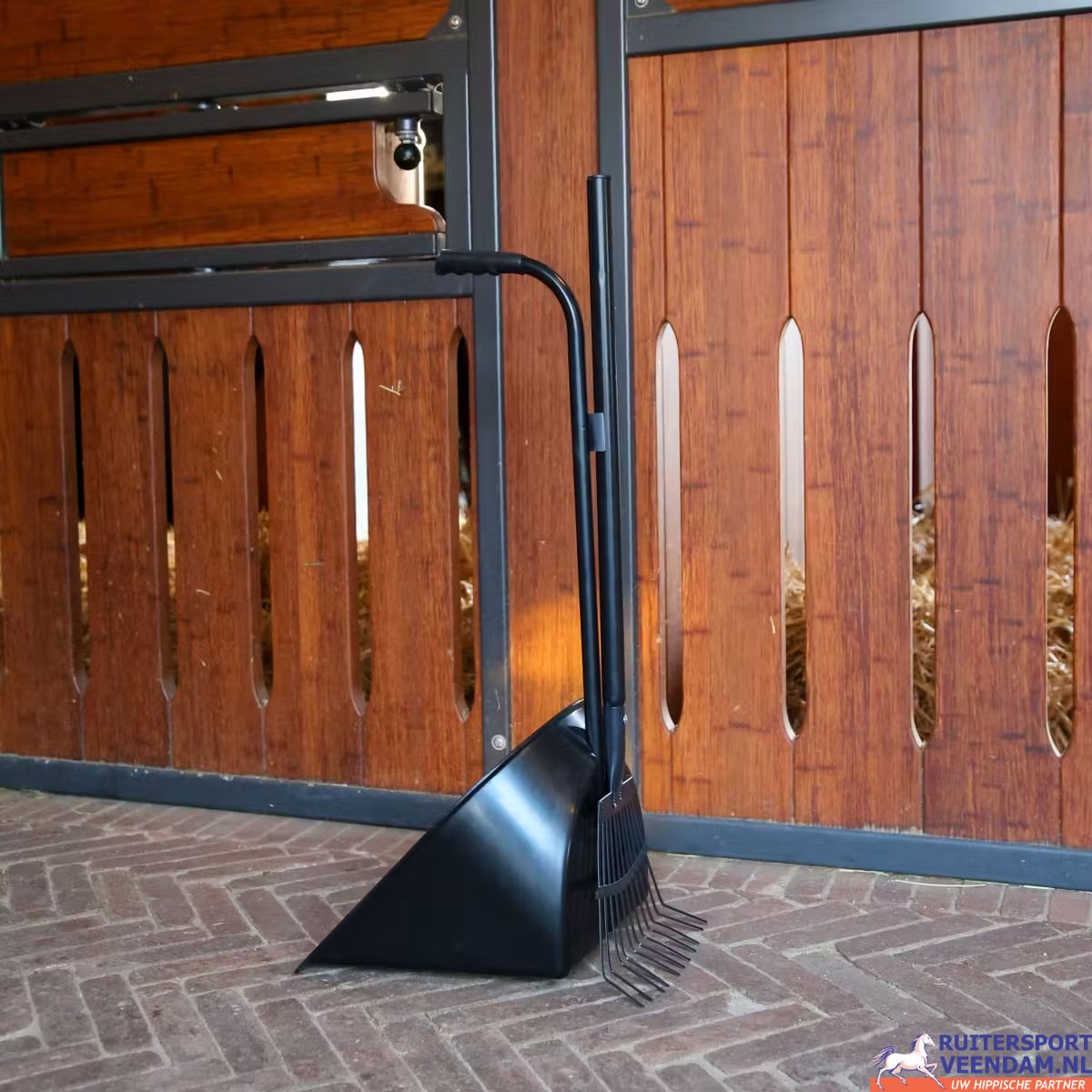 De Muck Scoop & Rake is een onmisbaar hulpmiddel voor elke ruiter die snel en efficiënt wil schoonmaken. Deze sterke maar lichte set bestaat uit een duurzame schep en een praktische hark, ideaal voor het opruimen van mest en afval in de stal, poetsplaats, paddock, trailer of vrachtwagen. Dankzij het ergonomische ontwerp ligt de set prettig in de hand en blijft de schep stabiel rechtop staan, zodat morsen wordt voorkomen. De slimme bevestiging maakt het eenvoudig om beide onderdelen samen op te bergen.