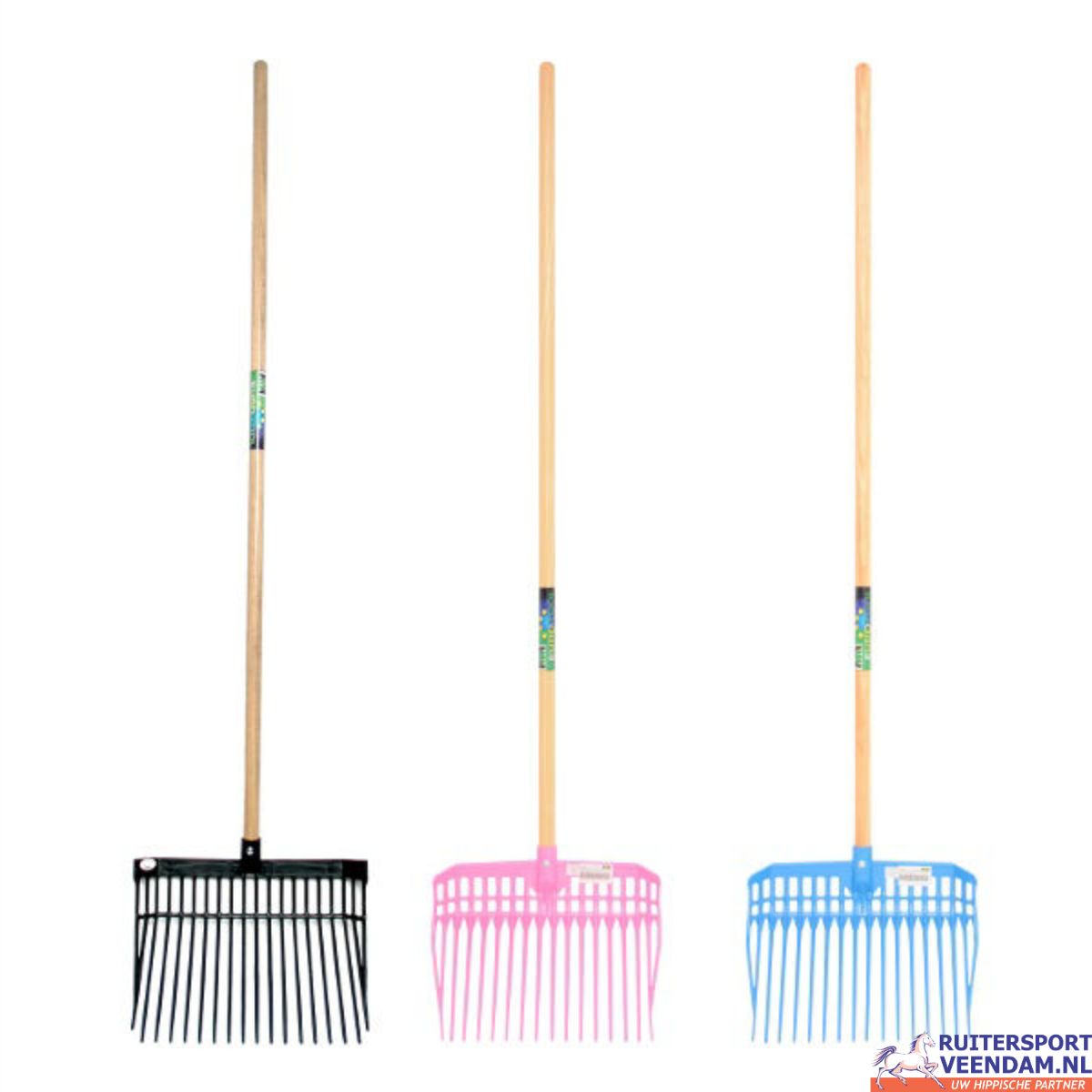 Deze bijna onbreekbare vijgenvork van MM Eurotool is gemaakt van sterk kunststof en voorzien van een houten steel van 140 cm. De vork heeft 16 tanden en een royale afmeting van 38 × 30 cm, ideaal voor dagelijks gebruik in de paardenstal. Verkrijgbaar in meerdere kleuren en ontworpen voor duurzaamheid en gebruiksgemak.
