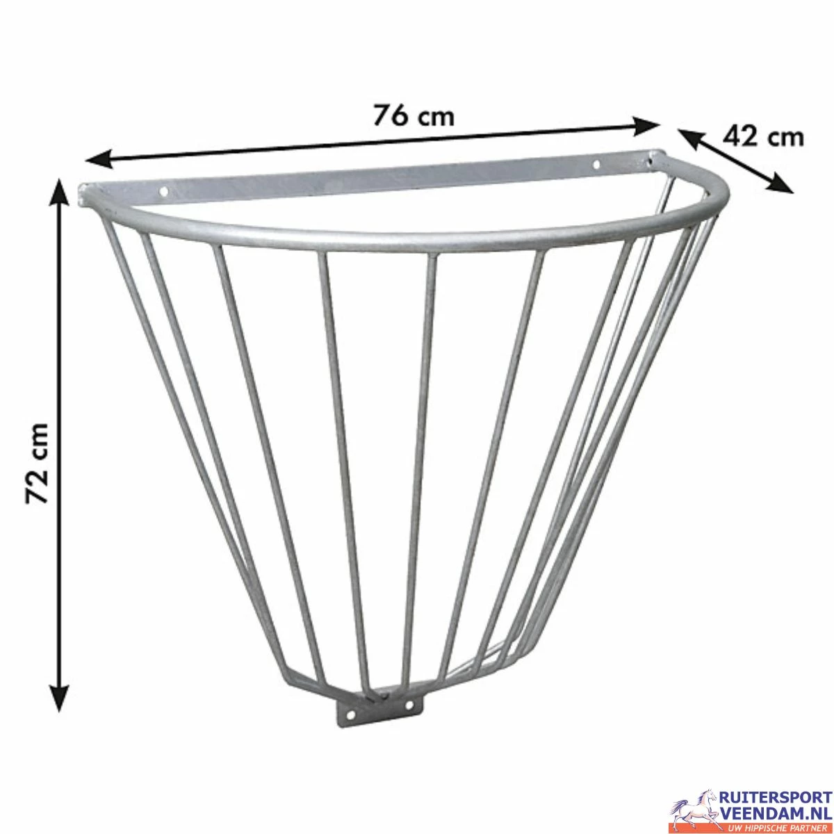 Verzinkte halfronde ruif voor het voeren van bijvoorbeeld hooi. Deze ruif is gemaakt door het kwaliteit bedrijf Patura. Deze hooiruif is eenvoudig te monteren op houten en stenen muren.