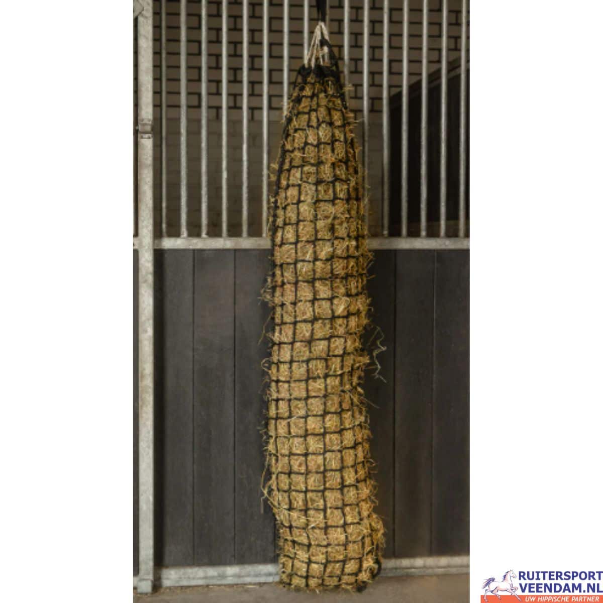 is ontworpen voor paarden die baat hebben bij een vlotte hooi-opname zonder dat er voer verloren gaat. Dankzij de ruime mazen van 6 cm is het hooi direct beschikbaar, wat ideaal is voor paarden die sneller eten of minder geduld hebben met fijnmazige netten. Tegelijkertijd voorkomt het slimme anti-mors ontwerp dat hooi op de grond belandt of wegwaait, waardoor de stal of paddock schoner blijft en je minder hoeft op te ruimen.