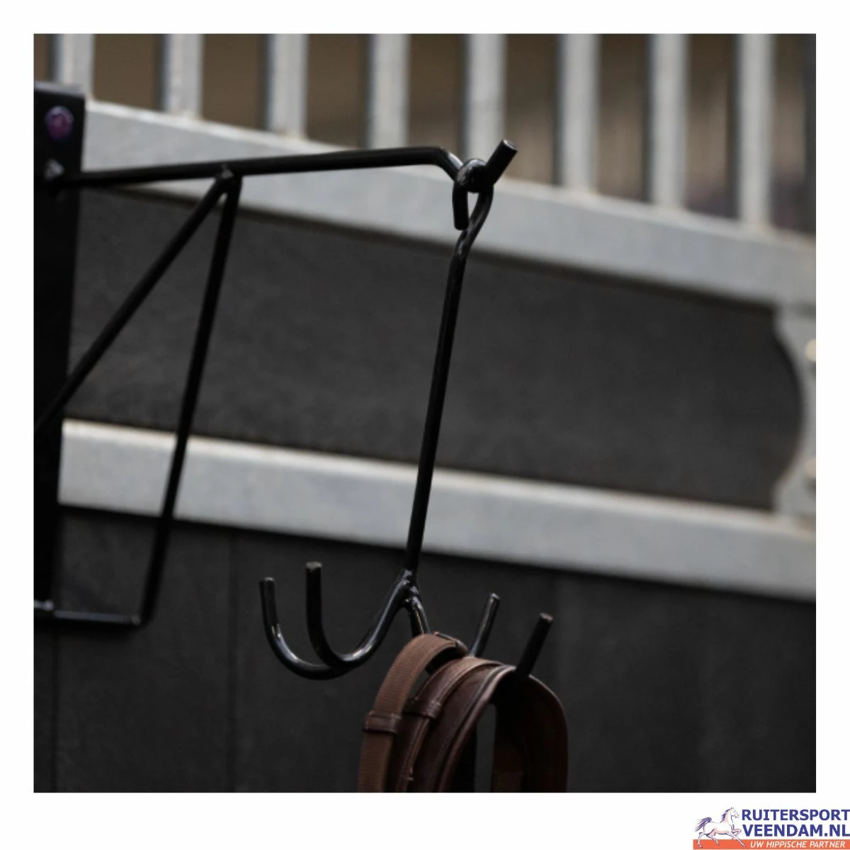 De ONE equestrian zwart metalen hoofdstelhanger is niet alleen praktisch, maar heeft ook een strak en stijlvol ontwerp dat bij elke inrichting past. Houd je tack netjes en geordend met deze handige hanger van Ruitersport Veendam en breng orde in je stal of tackkamer.
