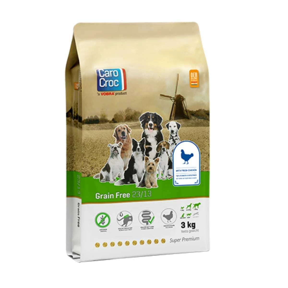 CaroCroc Grain Free is een compleet hondenvoer zonder granen, voor volwassen honden van alle rassen. Het biedt de perfecte ondersteuning voor een gezonde maag- en darmfunctie.