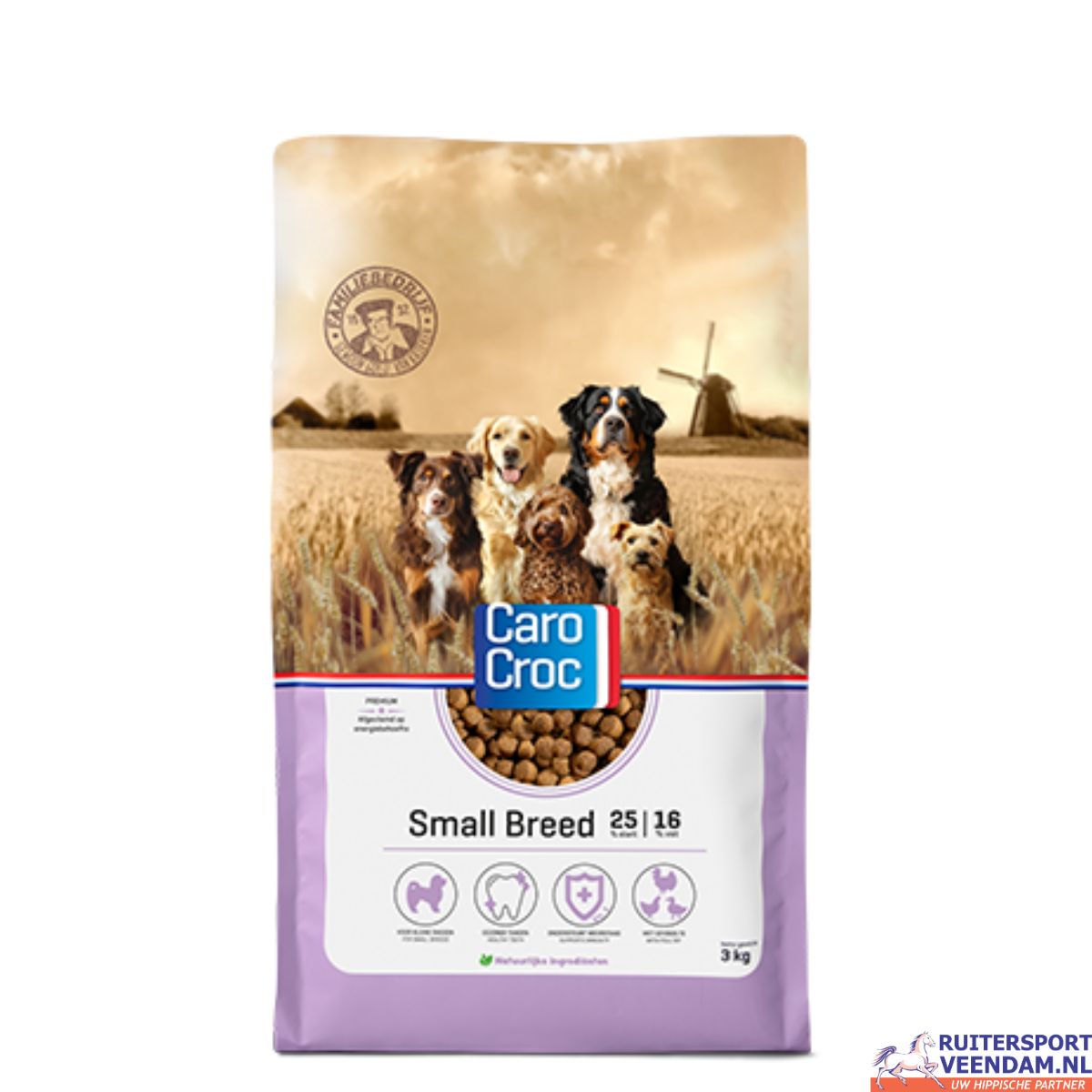 Honden van kleine rassen hebben een kleinere bek dan honden van grote rassen, het aantal tanden verschilt echter niet. Het betekent wel dat de tanden dichter op elkaar staan, wat er voor zorgt dat het risico op tandplak en tandsteenvorming groter is. Wanneer hier met het voer geen rekening mee gehouden wordt kan jouw hond te kampen krijgen met een slechte adem en tandvleesontsteking. Hiernaast hebben kleine rassen ook meer aanleg voor het ontwikkelen van overgewicht. CaroCroc Small Breed is speciaal afgestemd om deze specifieke behoeften te ondersteunen. Zo stimuleren de brokken de vetafbraak, voorkomen ze tandplak en gaan ze celveroudering tegen.