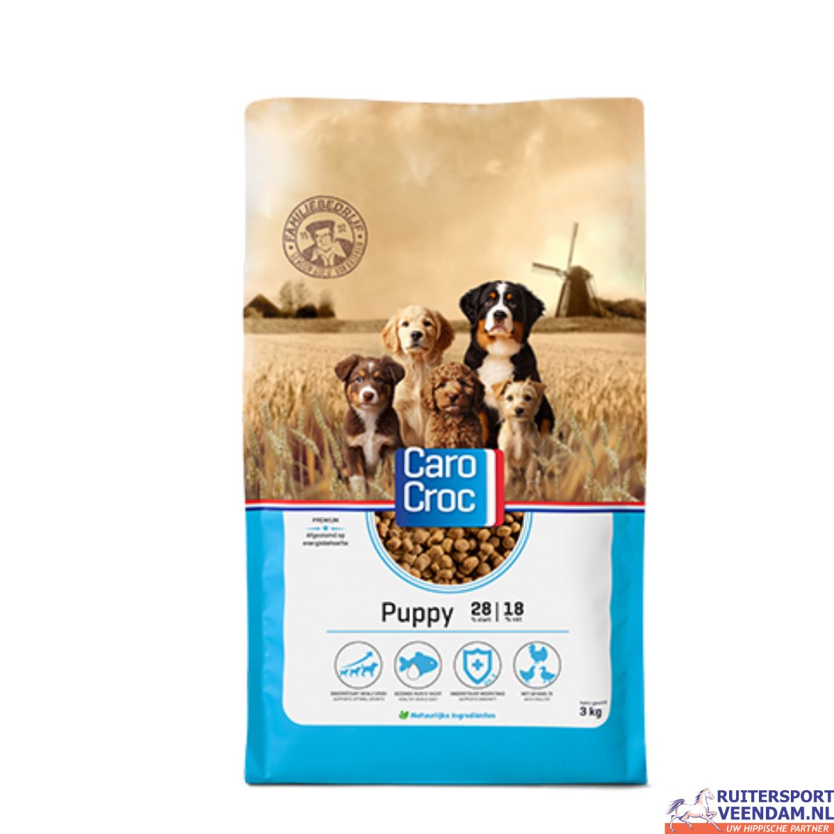 Door de evenwichtige samenstelling van CaroCroc Puppy voer ontwikkelt je pup zich optimaal en legt daarmee een stevige basis voor een gezond en vitaal hondenleven. Zo krijgt jouw pup door het unieke eiwit- vetgehalte van het voer de juiste hoeveelheid energie binnen.