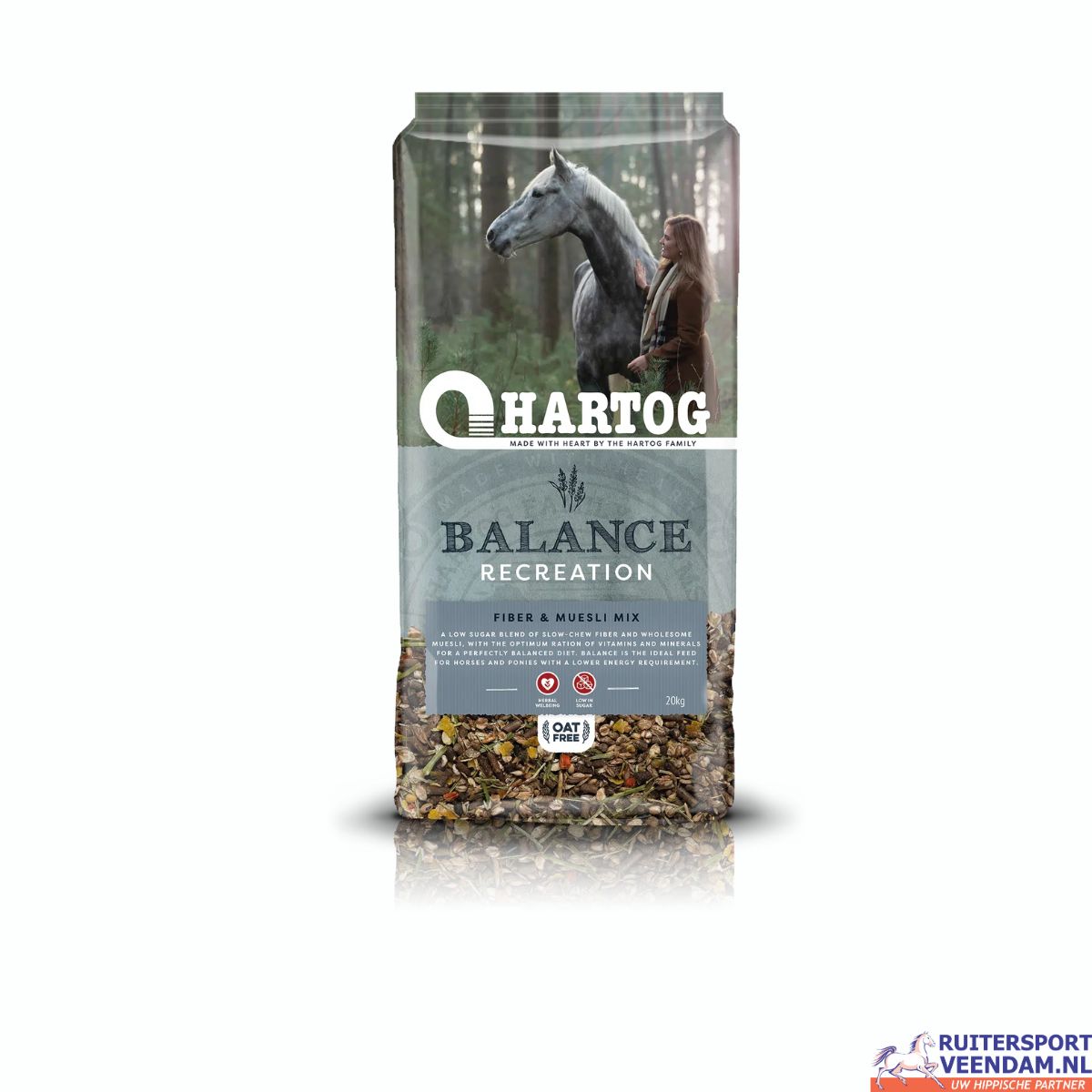 Hartog Balance is een hoogwaardige muesli voor recreatiepaarden, speciaal ontwikkeld om te voorzien in alle dagelijks benodigde vitaminen en mineralen. Deze veelzijdige muesli bevat een rijke mix van granen, wortelstukjes, kruiden en lijnzaadolie, waardoor het niet alleen voedzaam is, maar ook bijzonder smakelijk.