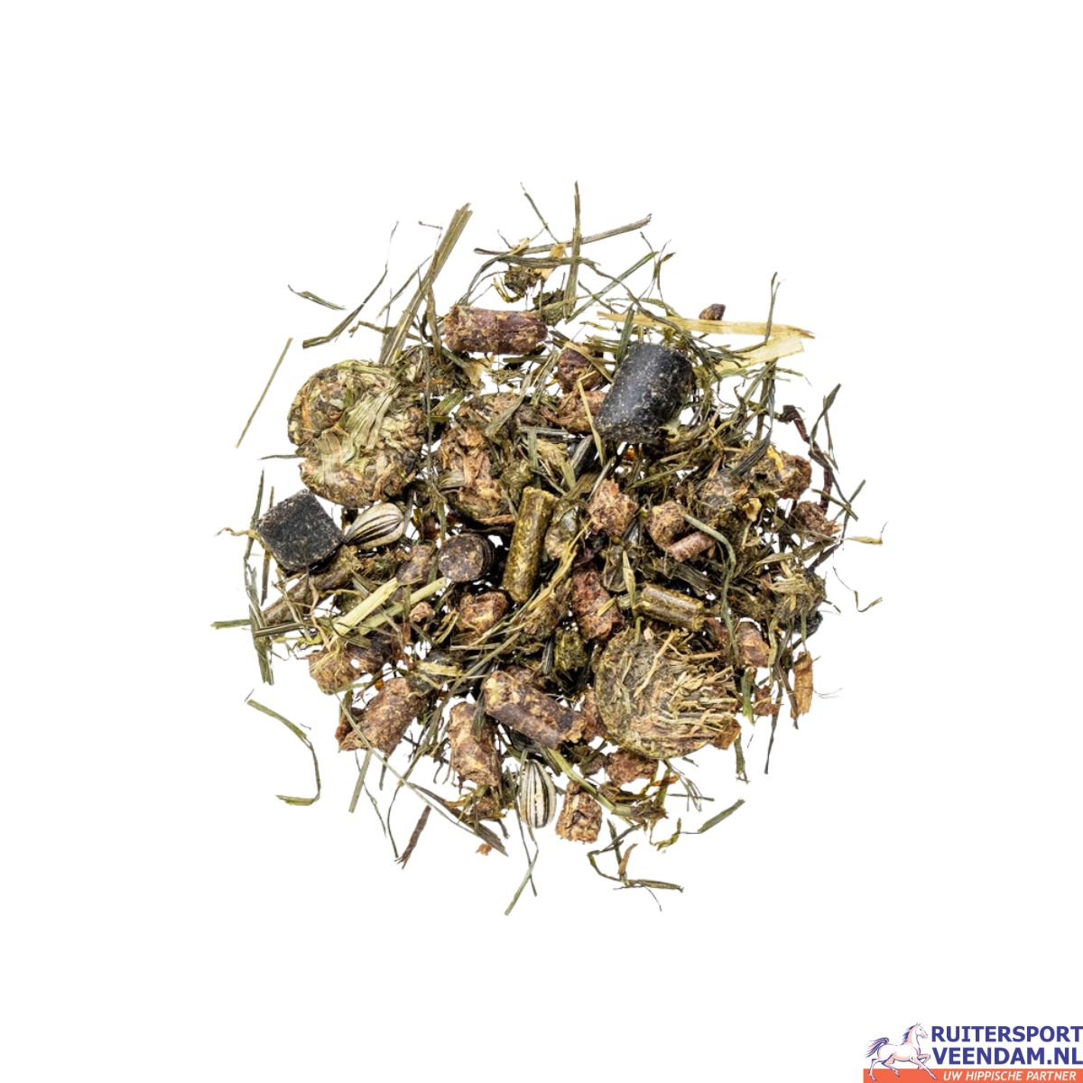 - of als aanvulling op het gebruikelijke trogvoer: 1 kg Spitzenreiter Magenmüsli vervangt 1 kg haver.
